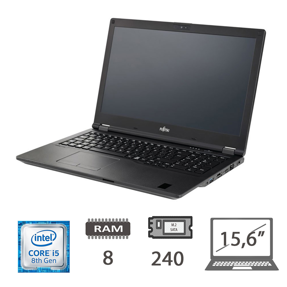 Modello: Fujitsu Lifebook E559, Dimensioni schermo: 15,6″, Risoluzione del display: 1920 x 1080, Processore: I5-8265U, Ram: 8 GB, Memoria: 240 GB